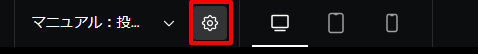 画面上部に表示されるのデバイスアイコンを切り替えることで、簡易的にスマートフォンやタブレット端末など、様々な画面サイズでのデザインを確認できます。