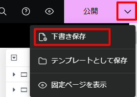 「公開」ボタン右側の「 v 」アイコンをクリックすると、「下書き保存」を選択することができます。「下書き保存」は変更内容を保存しておくことができます。