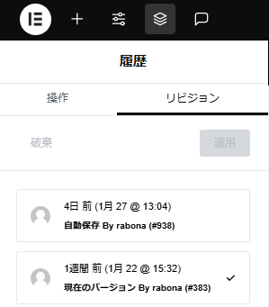 編集ページを開いてから行った操作をさかのぼることができます。直前の操作を取り消したい場合などに便利な機能です。