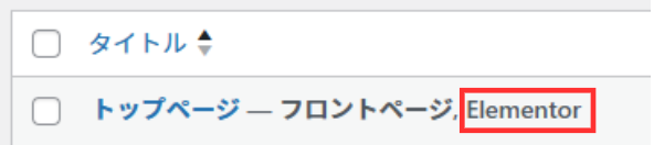 エレメンターで作成されているページにはタイトルに続き「―Elementor」と表記されます。