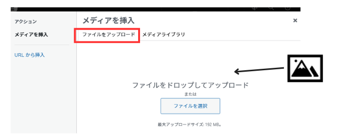 画像が既にアップロードされている場合は、「メディアライブラリ」より画像を選択します。