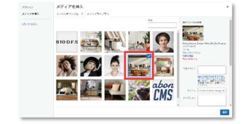 画像の選択を確認し、右下の「選択」ボタンをクリックします。