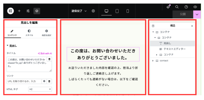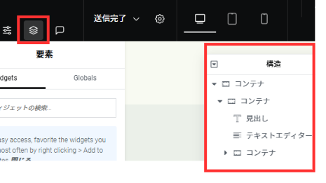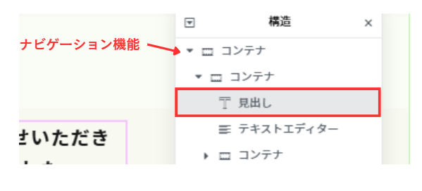 「構造」の表示上で要素を上下にドラッグするとページ上の要素の位置も変わります。便利な機能である一方で、デザイン崩れの原因になりますのでご注意ください。