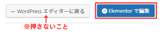 画面の上部に「← WordPressエディターに戻る」というグレーのボタンがありますが、こちらはクリックしないでください。操作を進めるとページが壊れます。