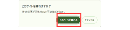 このとき、編集後保存していない場合に保存の確認が表示されることがあります。問題がなければ「このページを離れる」を押してください。