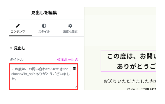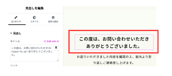 右側のプレビュー領域から、編集したい項目をクリックすると、左側のメニューが切り替わります。