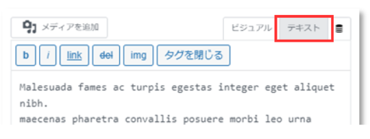 テキストエディターには、「ビジュアル」編集モードと「テキスト」編集モードがありますが、通常テキスト編集モードで編集するようにしてください。