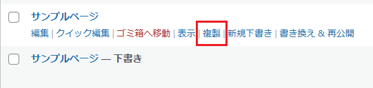複製ページの状態は「下書き」又は「非公開」にしておきます。