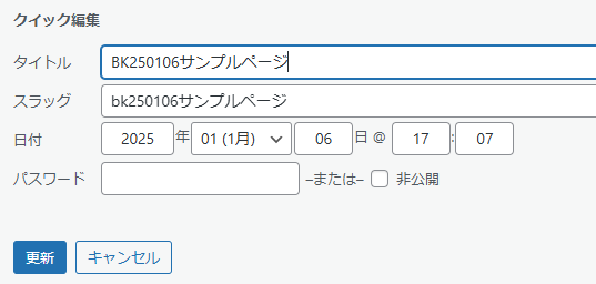 複製したページのタイトル名とスラッグ名を「BK~日付」などと名前を変えて、「更新」をクリックします。